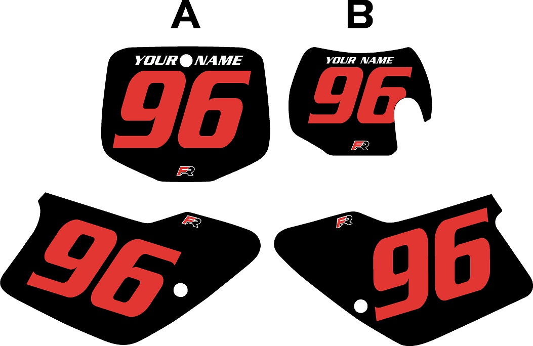 Comes with 1- Right Side Panel, 1- Left Side Panel, and 1- Front Number Plate (Option A OR Option B) Decals plus 2 Free mini plate decals as shown.