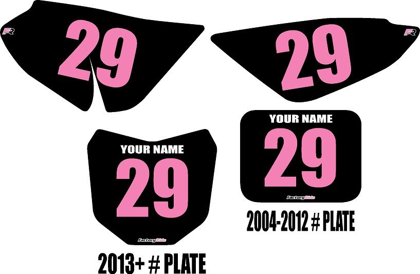 ![2004-2026 Honda CRF50 Black Pre-Printed Backgrounds with Pink Numbers by Factory Ride.]()