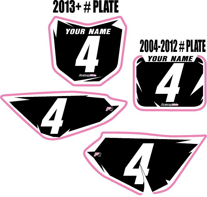 Backgrounds are 1- Right Side Panel, 1- Left Side Panel, and 1- Front Number Plate (2004-2012 or 2013-2026) Decal plus 2 Free mini plate decals of Front Plate 2013-2026.
