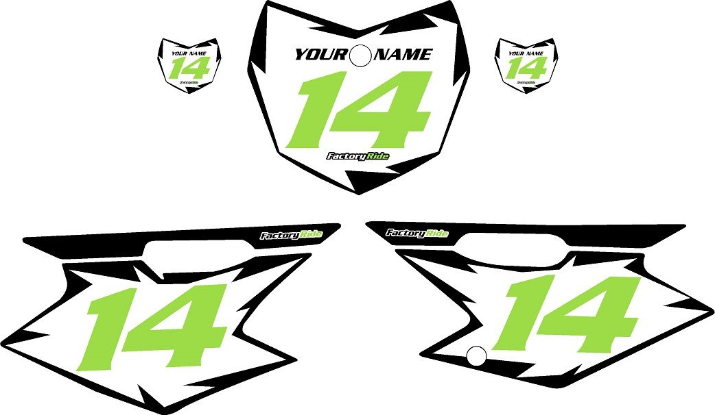 2008-2026 Kawasaki KLX 140 Custom Pre-Printed White Background - Black Shock Series - Green Number by Factory Ride