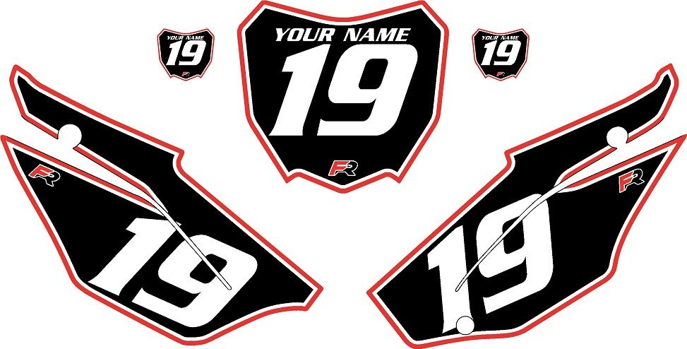 Comes with 1- Right Side Panel, 1- Left Side Panel, and 1- Front Number Plate Decals plus 2 Free mini plate decals as shown.