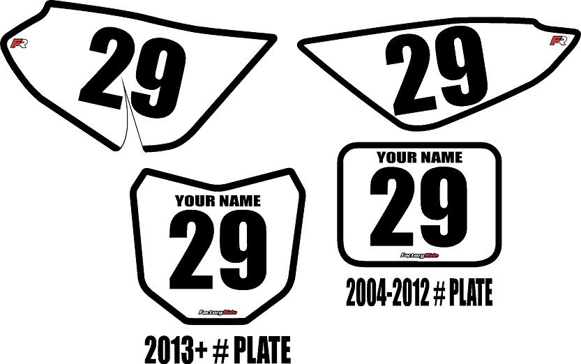 Comes with 1- Right Side Panel, 1- Left Side Panel, 1- Front (2004-2012 OR 2013-2026) Number Plate Decals. Also includes 2 Free mini plates of the 2013-2026 Year Front Plate (not shown). Front Number Plate Changed in 2013