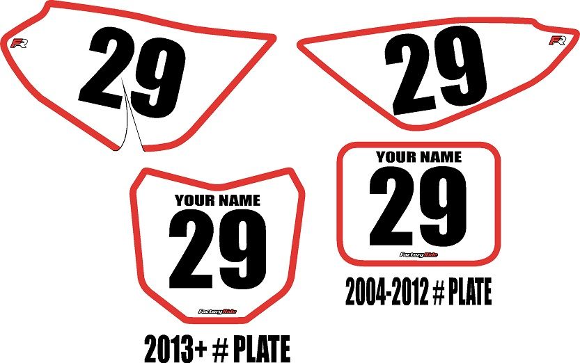 Comes with 1- Right Side Panel, 1- Left Side Panel, and 1- Front Number Plate (2004-2012 or 2013-2026) Decal plus 2 Free mini plate decals of the 2013-2026 Front Plate Style.