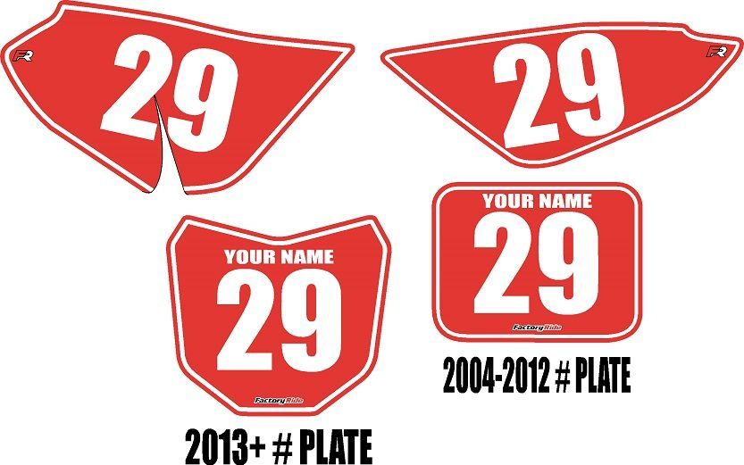 ![2004-2026 Honda CRF50 Red Pre-Printed Number Plate Backgrounds with White Pinstripe by Factory Ride.]()