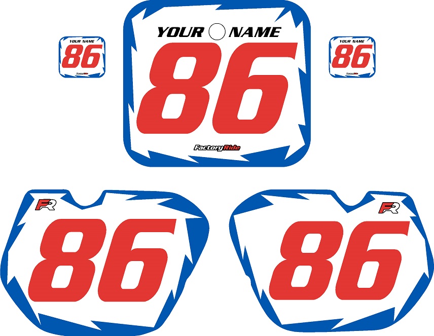 1985-1986 Honda CR250 Pre-Printed Backgrounds White - Blue Shock - Red Numbers by FactoryRide