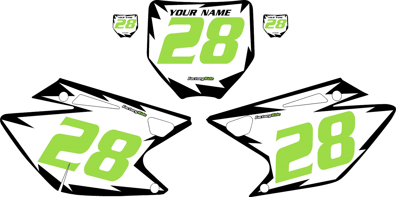 2006-2008 Kawasaki KXF250 Pre-Printed White Background - Black Shock Series - Green Number by Factory Ride