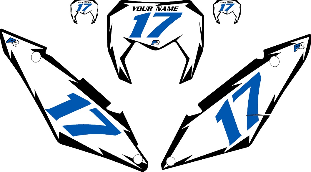 Pre-Printed Backgrounds Come with 1- Front Number Plate, 1- Right Side Panel, and 1- Left Side Panel Decals. Also includes 2 Free mini plates.