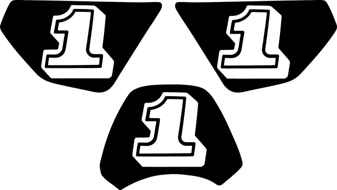 Comes with 1- Right Side Panel, 1- Left Side Panel, and 1- Front Number Plate Decals plus 2 Free mini plate decals not shown.