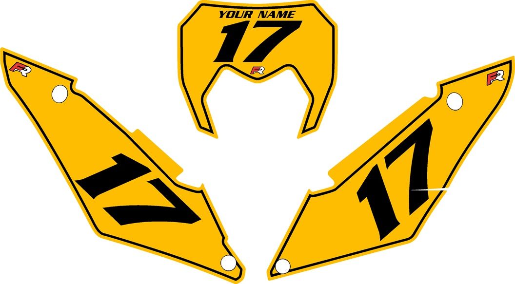 Comes with 1- Right Side Panel, 1- Left Side Panel, and 1- Front Number Plate Decals plus 2 Free mini plate decals as shown.
